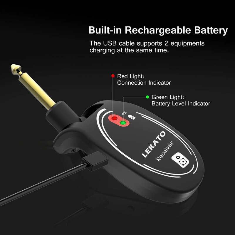 - 🎸 Long Working Time : Built-in rechargeable lithium battery, working time of the guitar transmitter & receiver is about 4 hours, and with a USB cable for convenient recharging, which ensures good performance for your every show. And the USB cable supports 2 instruments charging at the same time.
