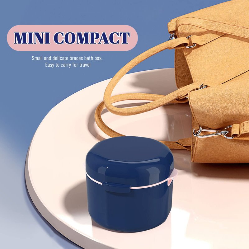 - 【FASHIONABLE AND BEAUTIFUL】The retainer cleaner case adopts two-color design, the outer shell is blue, and the inner basket is pink, and the overall appearance is stylish. Round shape, comfortable to hold.