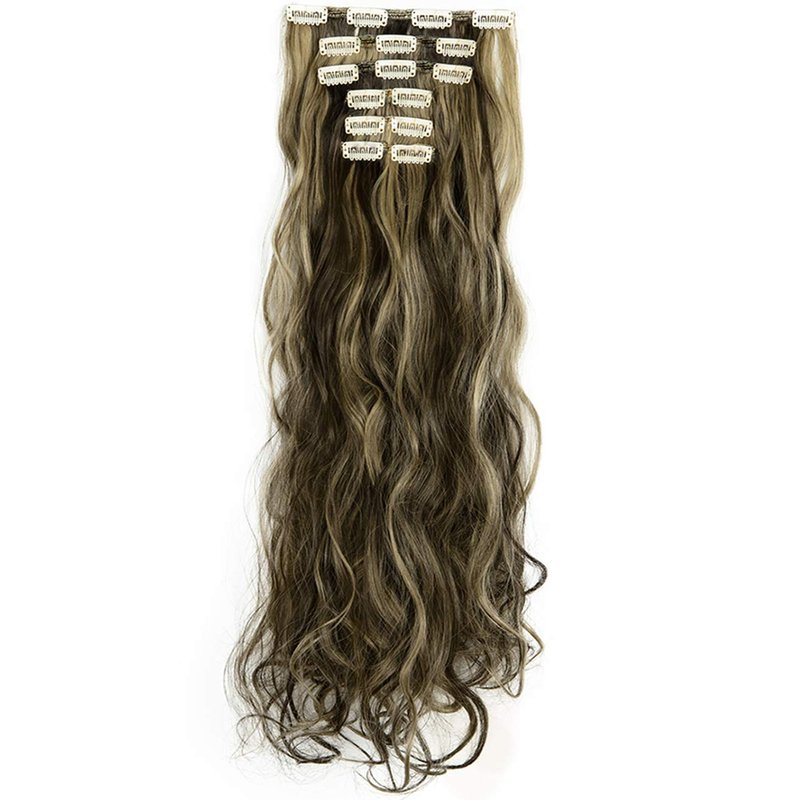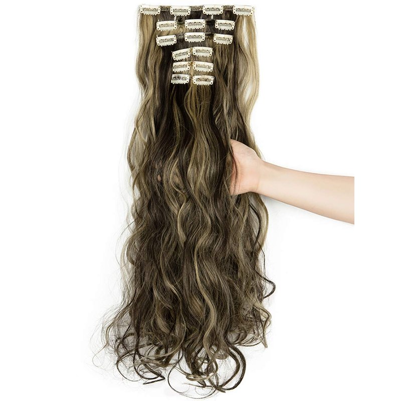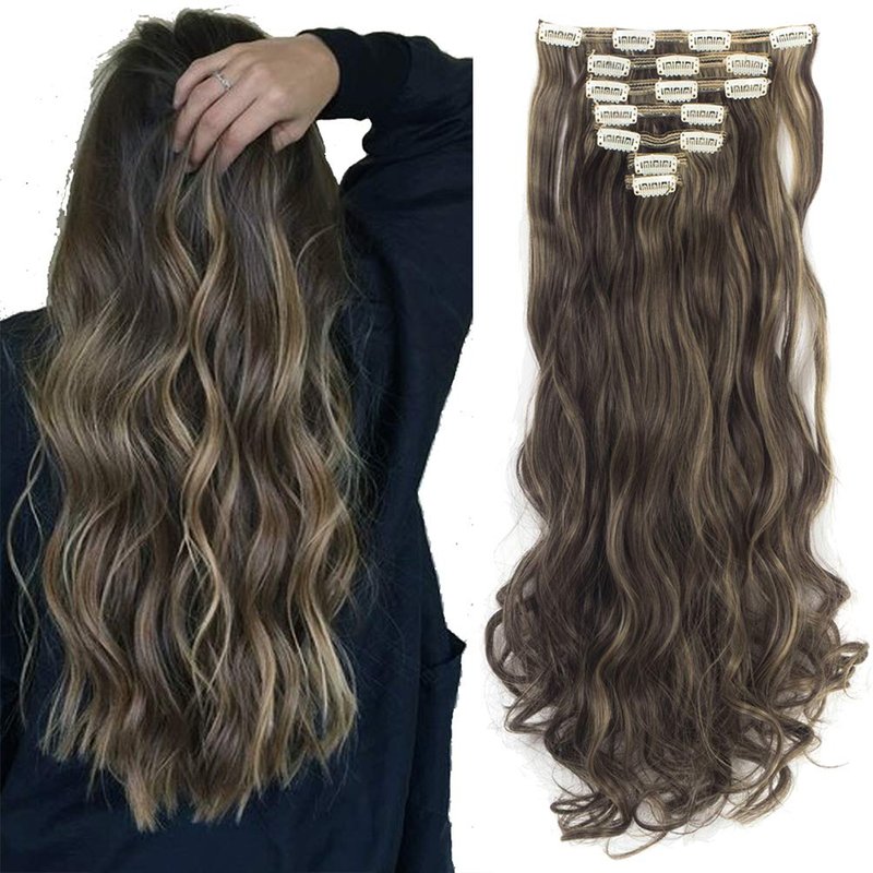 LELINTA 7Pcs 16 Clips 24 Inch Wavy Curly Full Head Clip in on Double Weft Hair Extensions Dark Brown Mix Ash Blonde