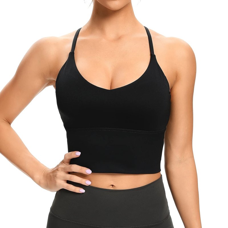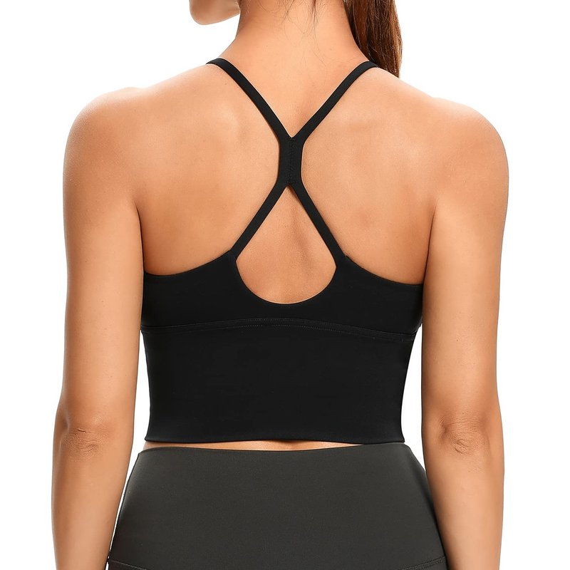 Lemedy Women Sports Bras Strappy Longline Fitness Padded Workout Yoga Running Crop Tank Tops (Black, Small)
