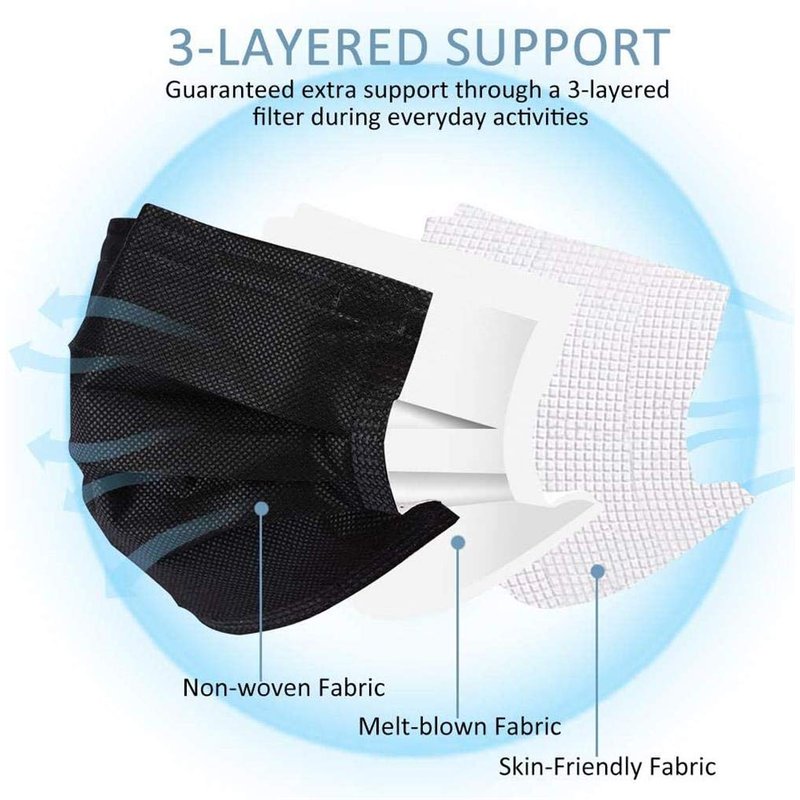 LEMENT 100 Pcs Disposable Face Masks, 3 Ply Face Masks Black Disposable Mask, (Disposable face mask)
