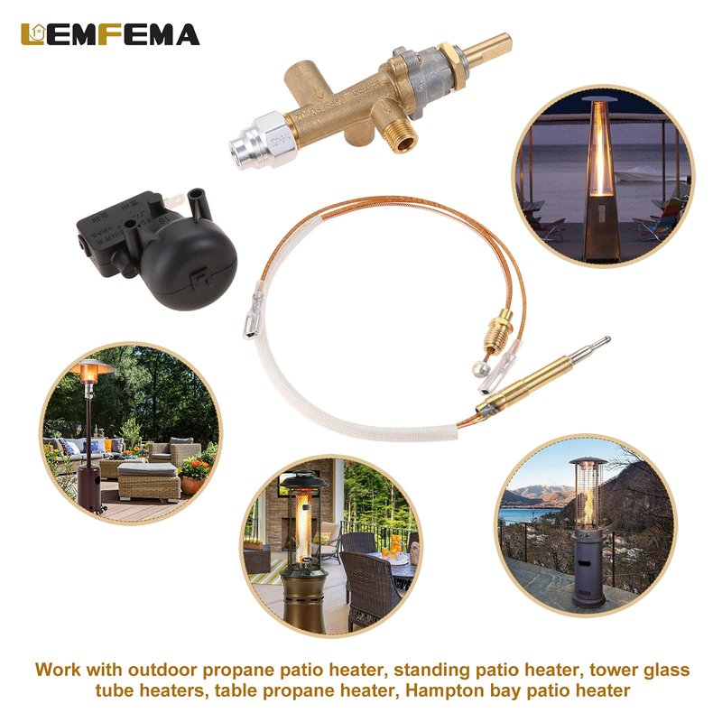 Lemfema Propane Gas Patio Heater Repair, Replacement Parts for Thermocouple Sensor & Dump Switch Controls Safety Kit,Main Control Valve with Pilot Port Kit