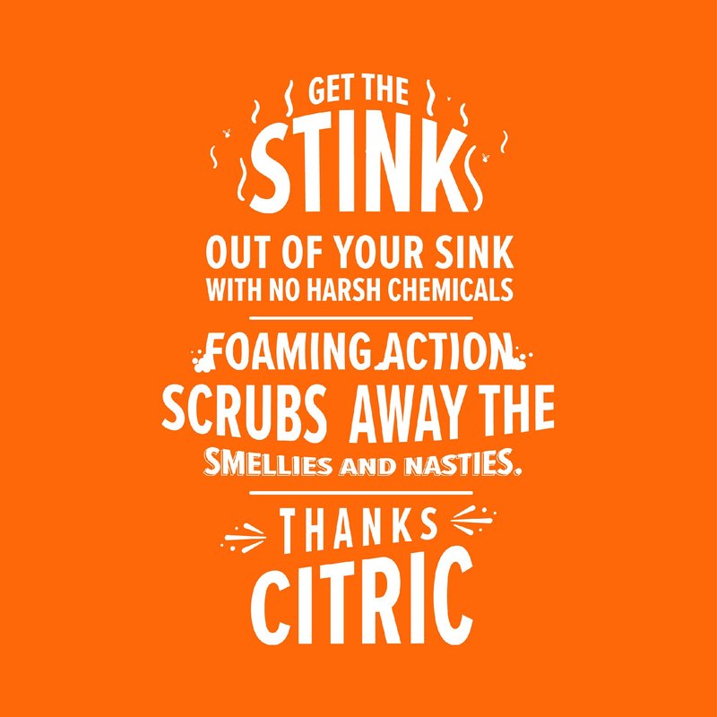 - POWERED BY CITRIC ACID: Thanks to our eco-friendly best friend citric acid, you can tackle even the toughest household cleaning tasks. Our garbage disposal foaming drain cleaner is safe and effective and helps break down grease, food scraps, and build-up. Experience the citrus magic for yourself!