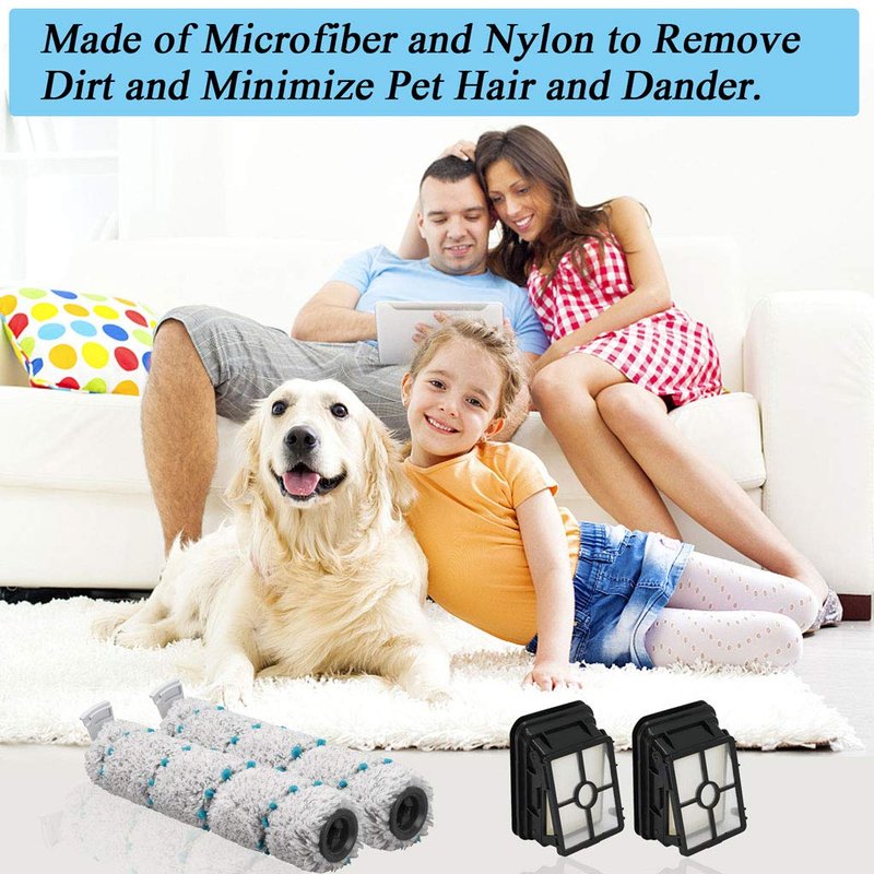 Lemige 2 Pack Multi-Surface Brush Rolls 2787 and 2 Pack Vacuum Filters 1866 for Bissell CrossWave Max 2554 2590 2593 2596 for HydroSteam 35151 3515 35152 3513 3518 B0440 Vacuums, Part 1618638, 1608684