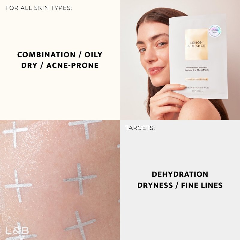 How to Use: After cleansing and toning, apply the Lemon & Beaker facial sheet mask to your face. Let it sit for 10-20 minutes. For enhanced results, pair with a galvanic device. Remove the mask and gently pat in any leftover essence. Enjoy the glow!