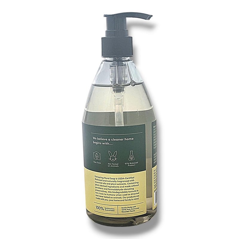 We believe a cleaner home begins with Everspring Hand Soap. It is USDA-certified biobased and naturally fragranced with essential oils and plant extracts. Containing plant-derived ingredients and made without parabens and formaldehyde-donating preservatives, this biodegradable formula is non-toxic to humans when used as directed and never tested on animals. Our products are made with you, your home and family in mind