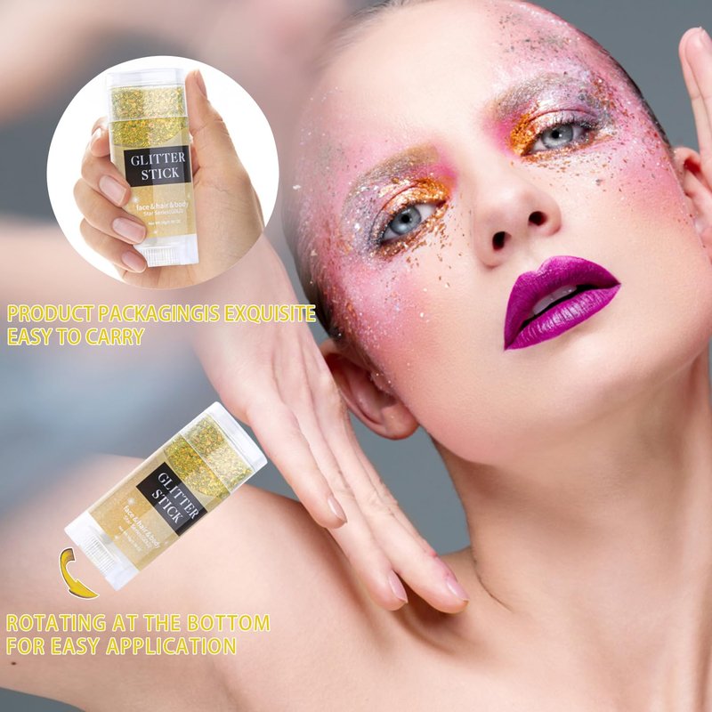- 【Body Glitter Gel Stick】Our glitter gel stick with holographic glitters and iridescent shimmer shine, creates a mesmerizing and eye-catching look that is perfect for parties, festivals, and special occasions.