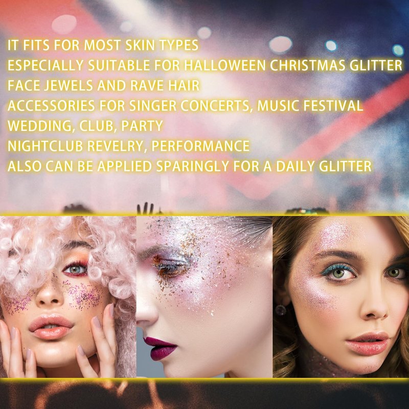 - 【Easy to Use】Our cosmetic-grade quality body glitter gel is with good adhesion, no glitter glue required, allowing you to effortlessly add a touch of sparkle to your body, face, hair, and lips. A quality glitter gel not only saves your makeup time, but also simplifies your makeup removal process.
