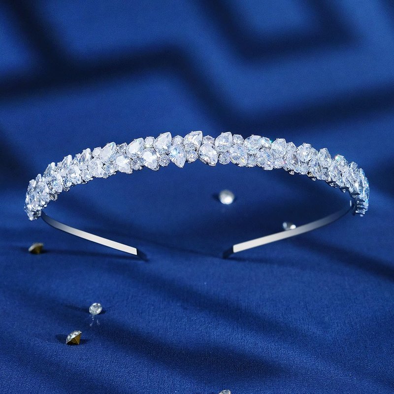 - Silver bridal headband with lustrous Cubic Zirconia and alloy. This simple but exquisite wedding tiara has a raised profile like a classic tiara but is much more effortless in its beauty
