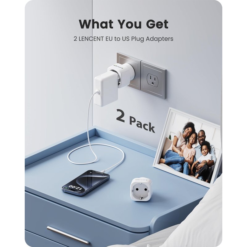 LENCENT 2 Pack Europe to US Plug Adapter,European to USA Adapter, American Outlet Plug Adapter, EU to US Adapter, Europe to USA Travel Plug Converter