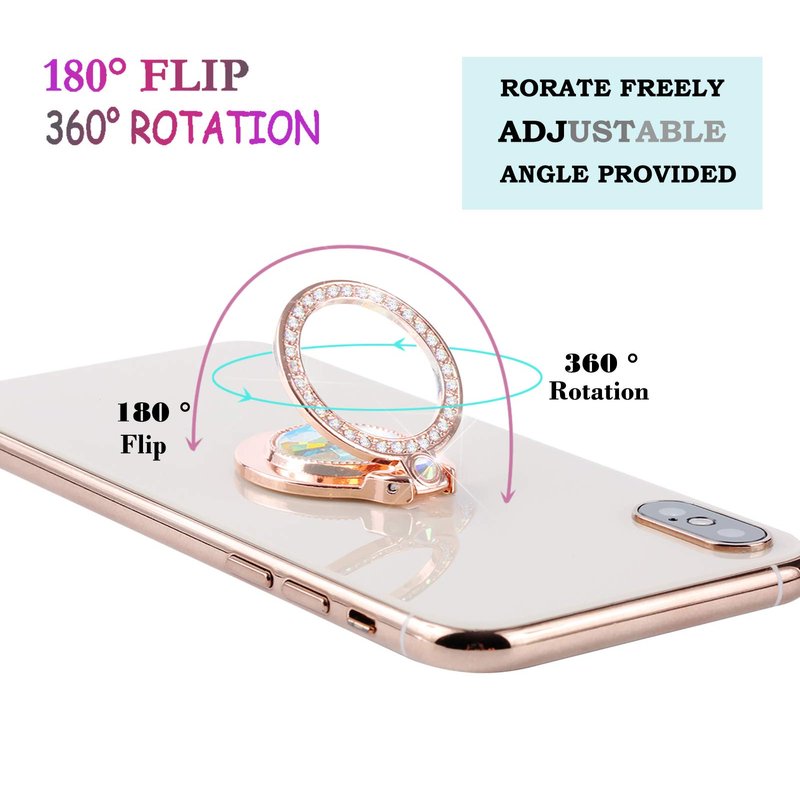 - 【Convenient and Safe】: Diamond phone ring grip prevent your phone from accidental drops and slips. Rhinestone phone kickstand ring enhance good handling and promote one-hand use.