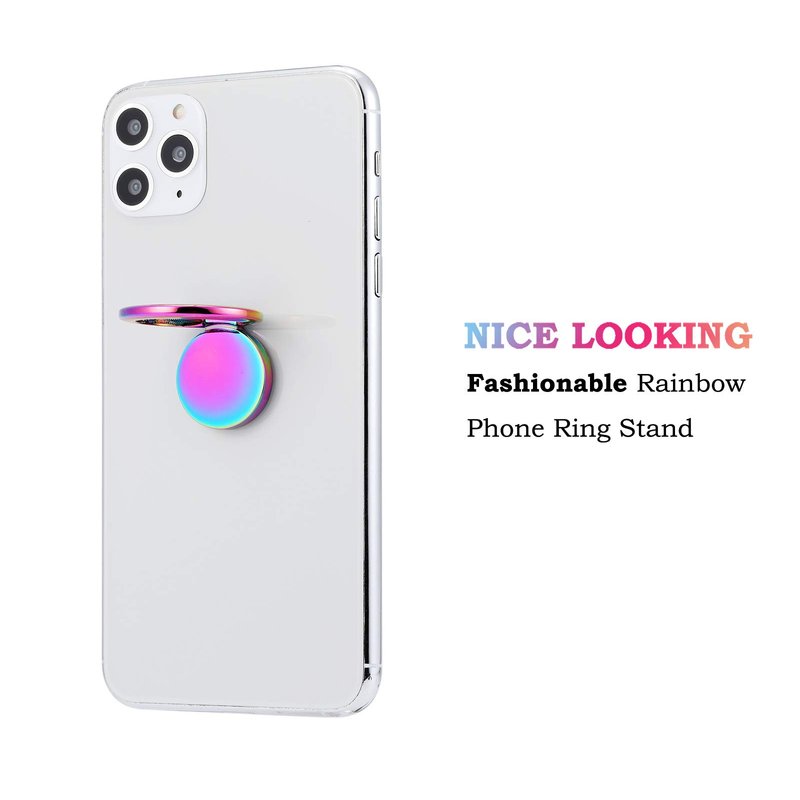 lenoup Rainbow Cell Phone Ring Stand Holder,Multicolor Ring Grip Kickstand,Iridescent 360 Rotation Metal Finger Ring for Phones,Pad