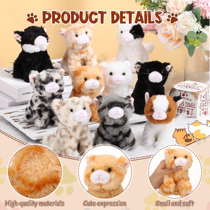 - Small Size: each plush kitten stuffed animal is approx. 4.72 - 5.5 inch / 12 - 14 cm, which is suitable for people to hold and hug, lightweight, easy to carry, and does not take up too much space