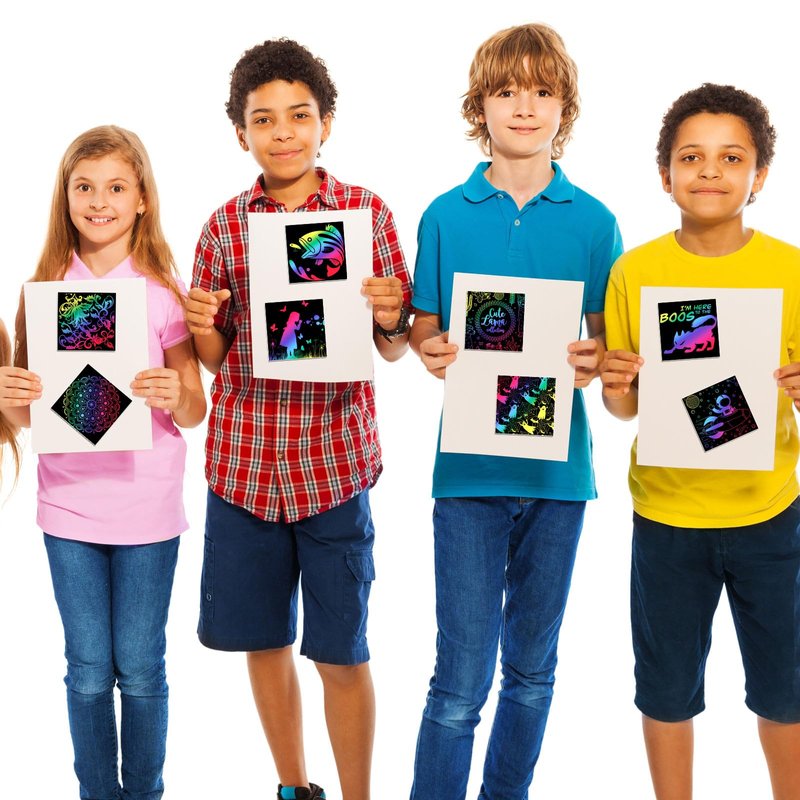 - Versatile and Fun for Multiple Purposes: whether you're an aspiring artist, student, or teacher, these rainbow scratch paper are ideal for a variety of purposes; You can use them for creating distinctive greeting cards, illustrations and designs, doodle pads, classroom projects, or simply to enjoy the therapeutic joy of scratching away to reveal vibrant colors