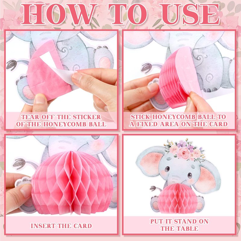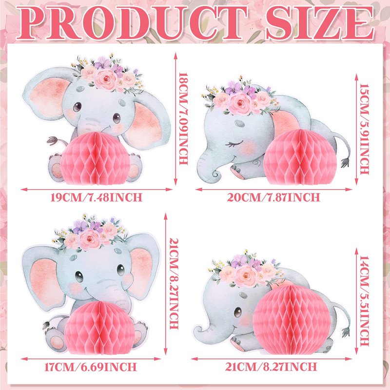 - Elephant Party Decorations: you will get 8 pieces of pink elephant honeycomb centerpieces in 4 different styles, 2 pieces for each style, enough quantity and styles to meet your party needs, adorable design can create a lively party atmosphere