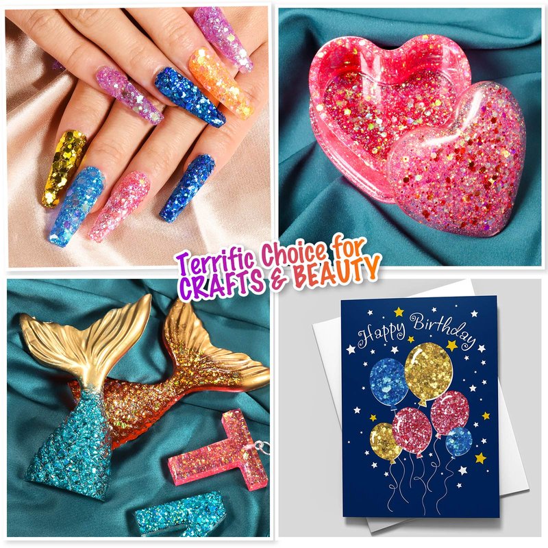 - Terrific Choice for Crafts & Beauty: Great choice for DIY resin art crafts, glitter tumbler, soap making, scrapbooking, painting, Christmas ornaments making etc. Also perfect for nail art, makeup, body art, hair, and DIY eyeshadow, lip gloss, glitter nail polish, and so on.