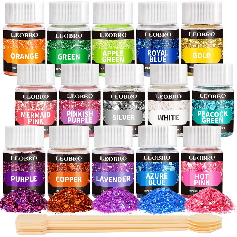 - Safe Mixed Chunky Glitter: 15 jars, great amount with about 10g/jar. Mix of chunky glitter and extra fine glitter, help build sparkling effect naturally. Made of premium plastic, safe for skin, nail and hair, render it unlimited for various applications.