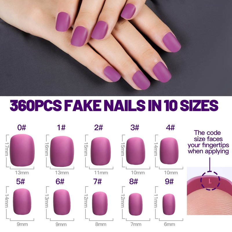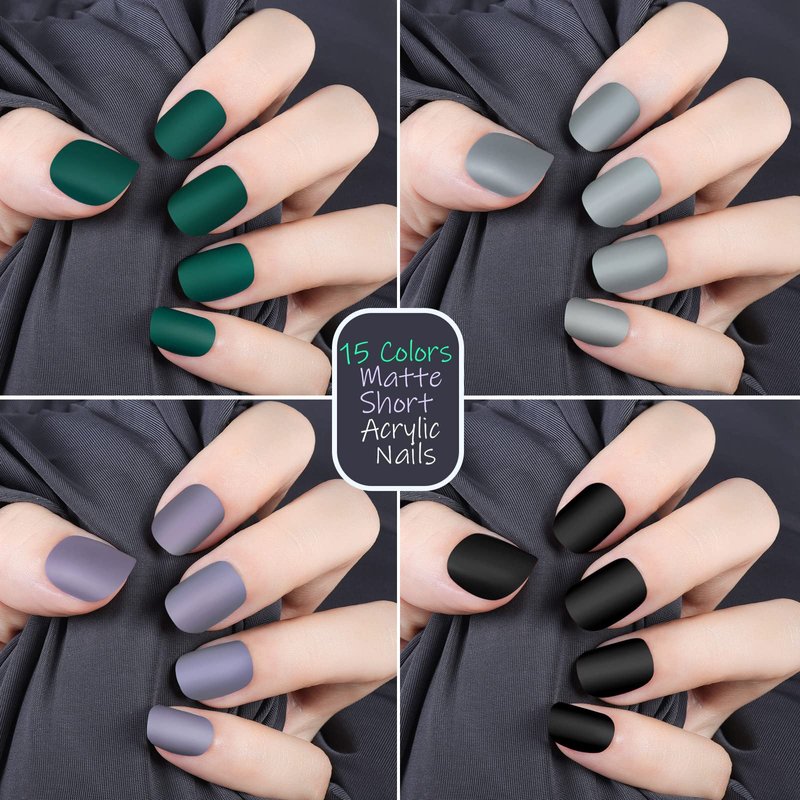 - 365Pcs Matte Short Press On Nails Kit: 15 colors, 24pcs/color, total 360pcs short matte fake nails, come with 1 bottle of nail glue, 2pcs nail files, and 1 piece cuticle pusher, provide everything you need for doing nail art. Short round shape, looks clean and smart, requires no special care, great for active person. Plus matte finish adds luxury sense, exquisite and graceful!!