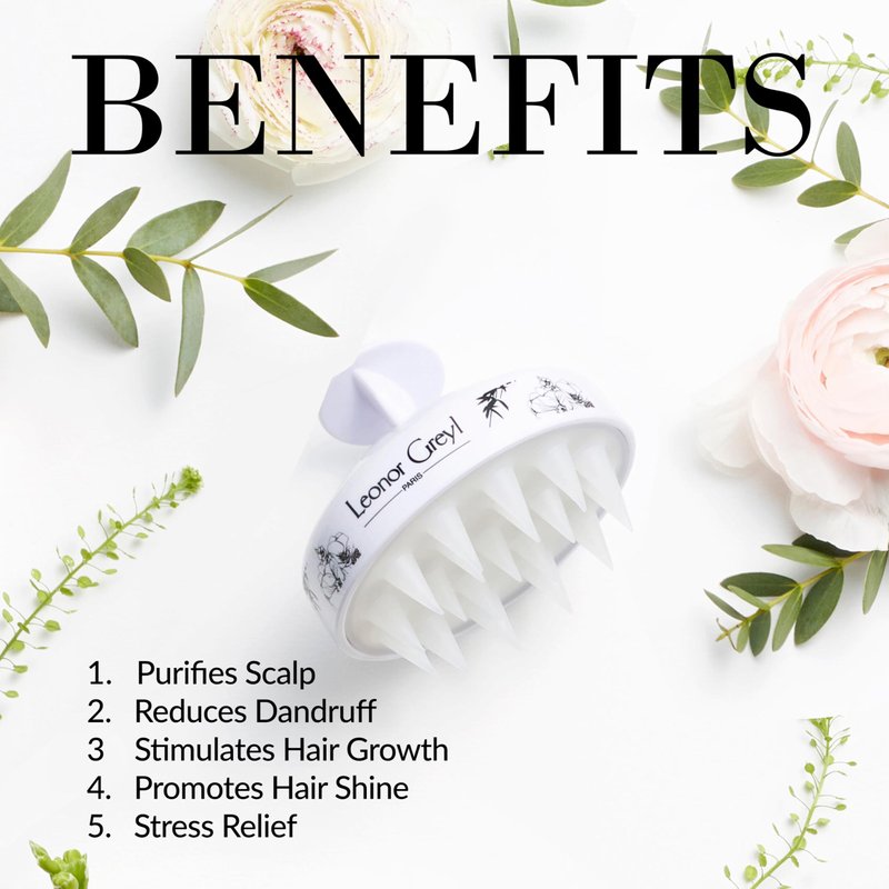 - From our famous luxury Leonor Greyl Paris salon comes our award winning scalp massager hair growth brush. Created to clean and massage the scalp, this scalp massage brush helps the shampoo to lather up and purify the scalp while eliminating dandruff and residue. Its relaxing action leaves the scalp more supple and improves scalp oxygenation, thus promoting hair growth.