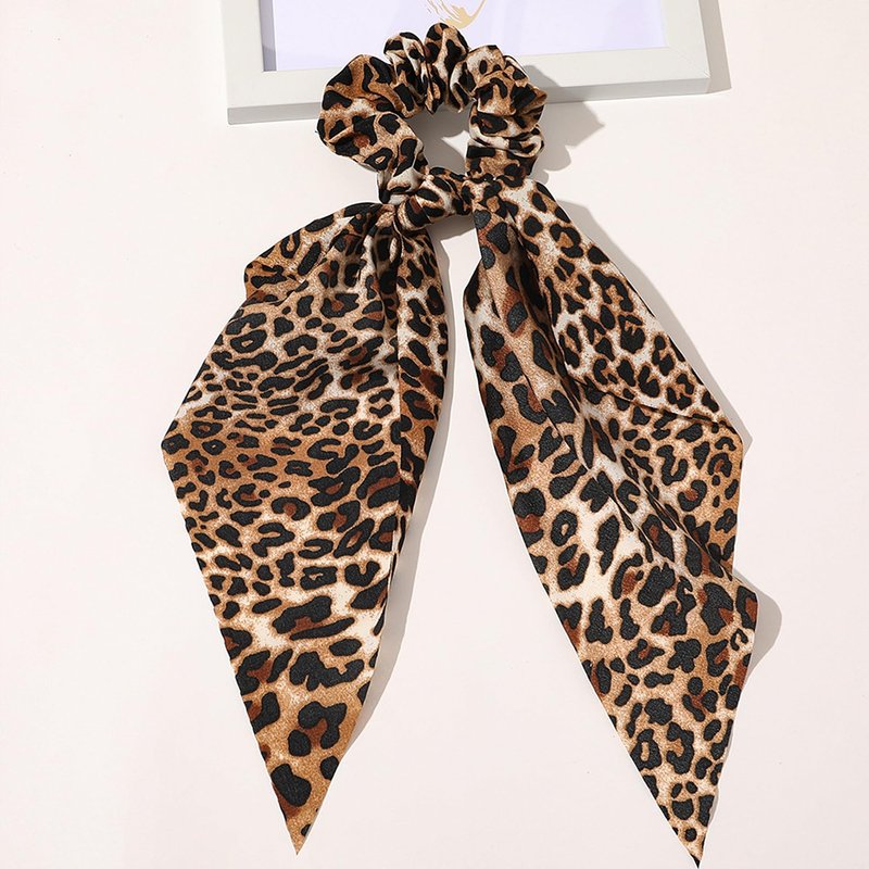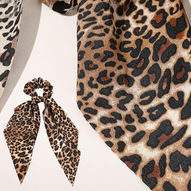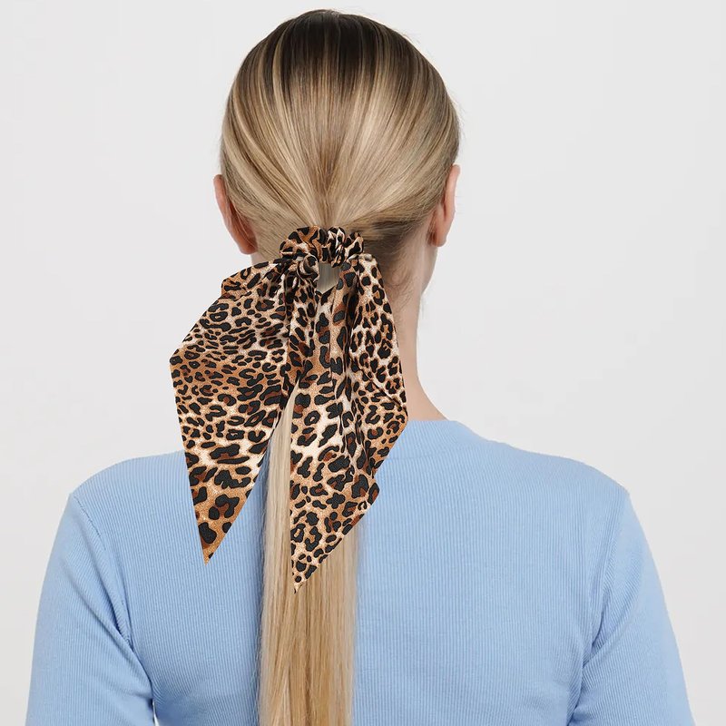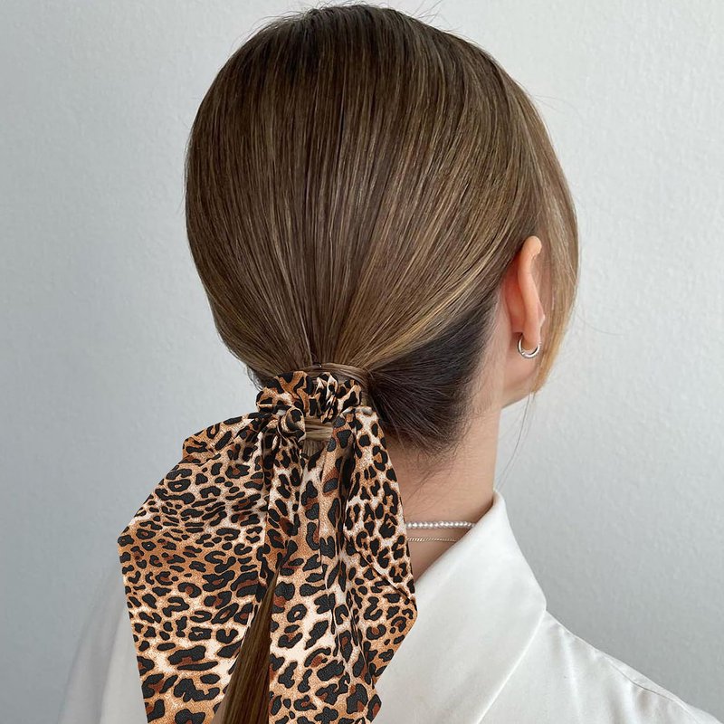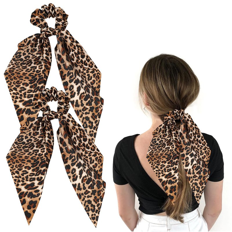 Leopard Hair Scarf Scrunchies for Women - 2Pcs Bow Scrunchies Knotted Bow Hair Ties Long Elastic Bands Satin Hair Ribbon Scrunchy Soft Ponytail Holders for Women Girls Gifts