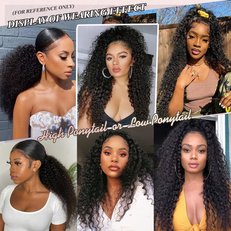 - {Soft Bouncy Heat-Resistant Material} : This kinky curly drawstring ponytail are made of light and soft material, which makes the ponytail extension lightweight, feels soft with cascading curls, and looks natural. Easy add your hair volume.