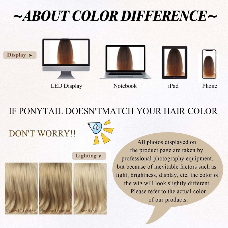 - Kindly Remind:Considering light and different displayers, the exact color might be slightly different from it showed in the picture. We try our best to describe the item specifically.All wigs may shed slightly especially when you wear for the first time which is normal.