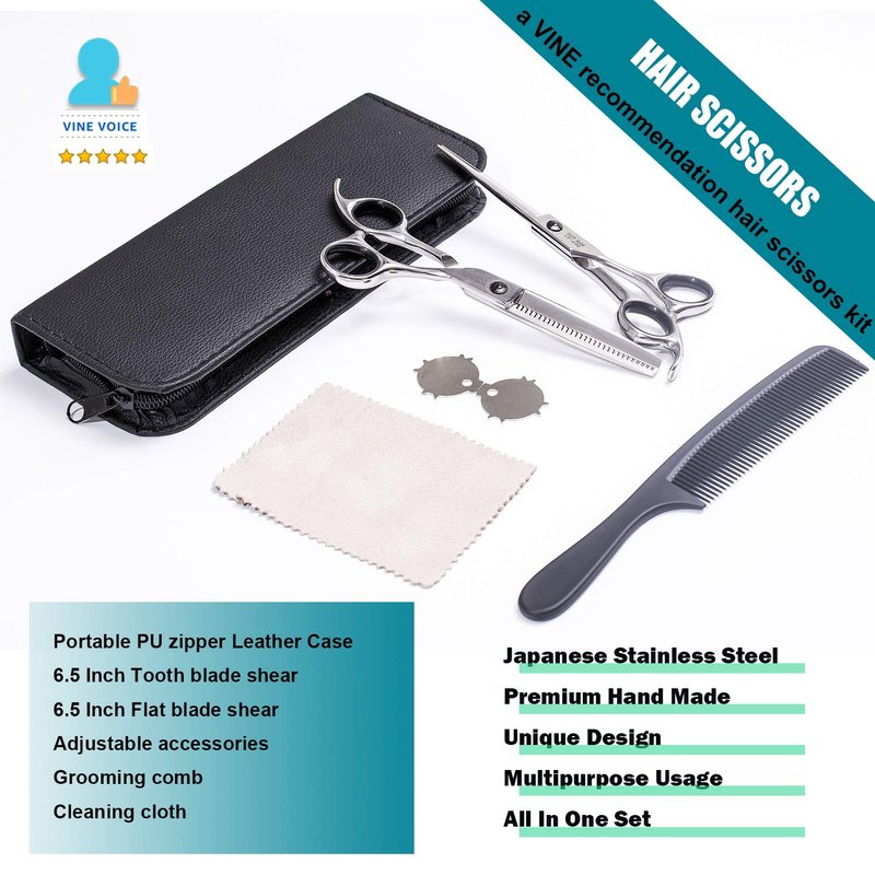 LePinko Hair Cutting Scissors Set, Professional Trimming and Thinning Shears Kit, 6.5 Inch Japanese Stainless Steel With PU Case and Carbon Anti-static Comb, Hairdressing For Home, Salon, Barber