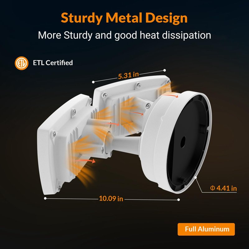 - Adjustable Design: It’s easy & flexible to adjust the 2 bright LED light heads to a different angle as your requirement, this outdoor LED flood light brings extra safety to your home