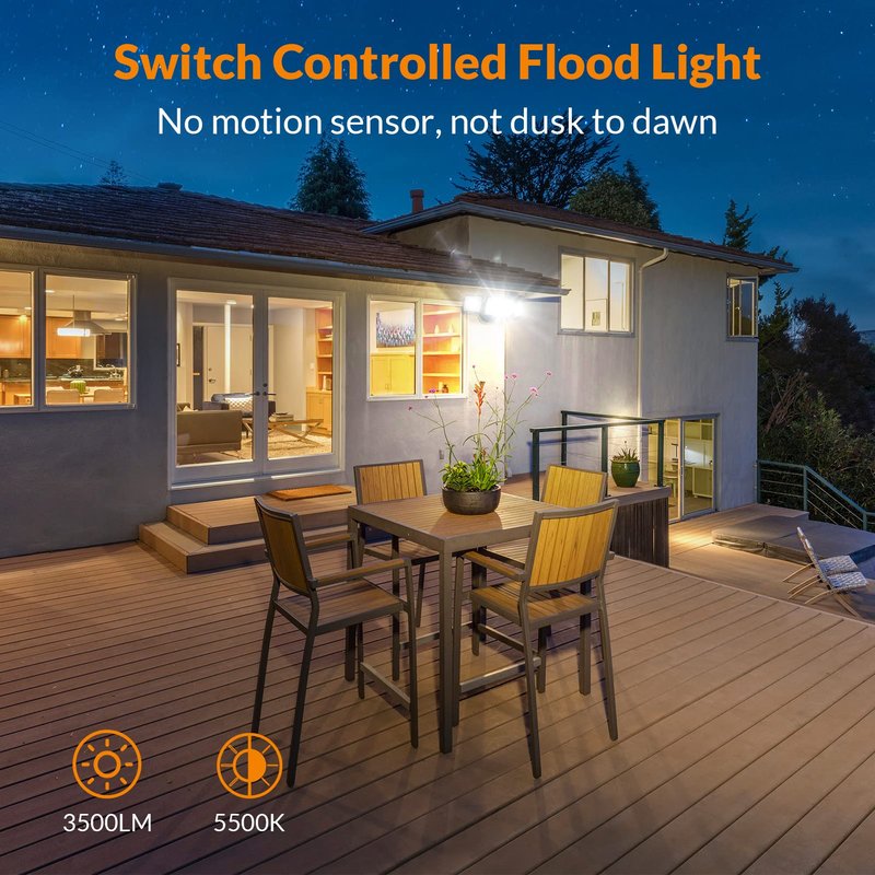 - Easy Installation & Switch Controlled: The outdoor flood light fixture is easy to install. Just mount the wired light to a junction box by following a few simple wiring steps, and then connect a wall switch to turn on/off the light (No motion sensor).
