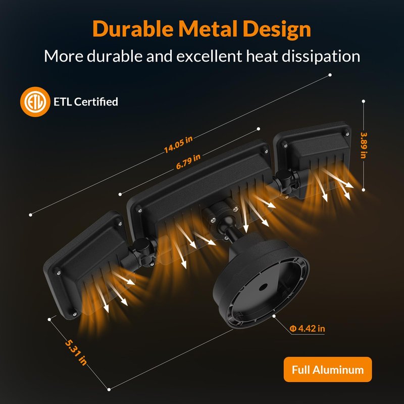 - Adjustable Design: It’s easy & flexible to adjust 3 bright LED light heads to a different angle as per your requirement; ETL certificated, this outdoor LED flood light brings extra safety to your home.