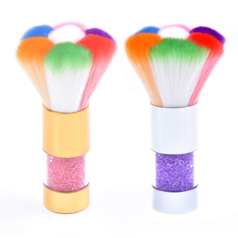 LEQ 2Pcs Colorful Nail Art Dust Brush Remover Cleaner for Acrylic & UV Gel Nails with Shiny Rhinestone Handle