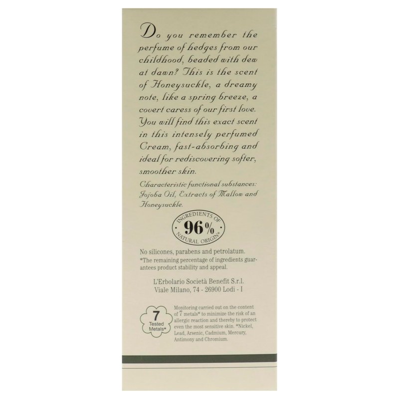 LErbolario Perfumed Body Cream, Honeysuckle, 5.7 oz - Body Lotion - With Extracts of Jojoba Oil - Floral Citrus Scent - Moisturizing - Cruelty-Free