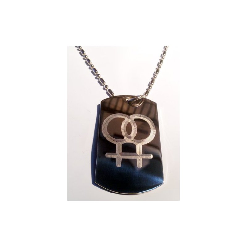 Lesbian Female Female Pride Gay Logo Symbol - Military Dog Tag Luggage Tag Key Chain Metal Chain Necklace
