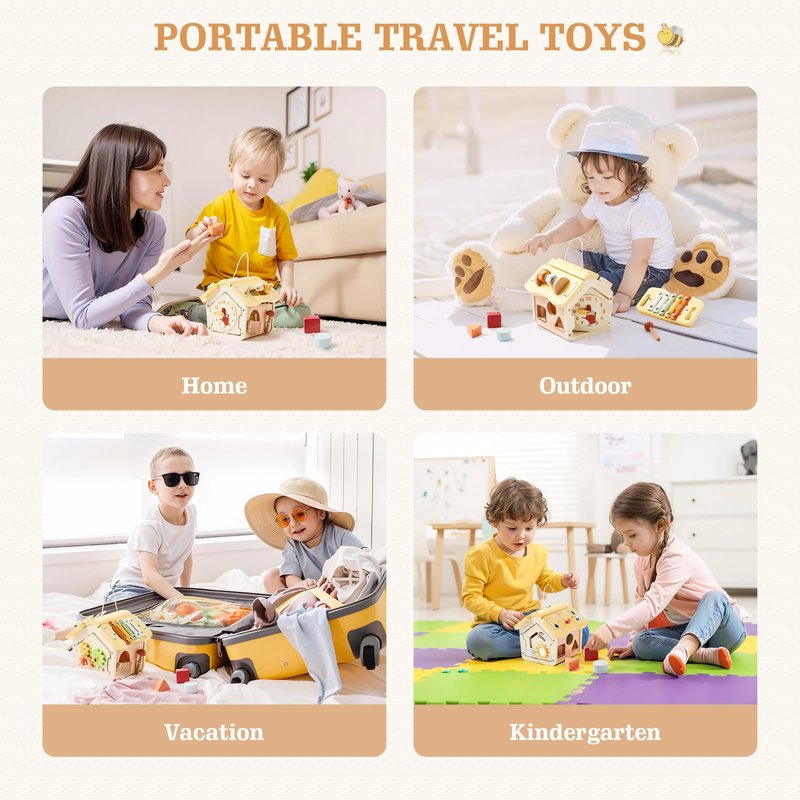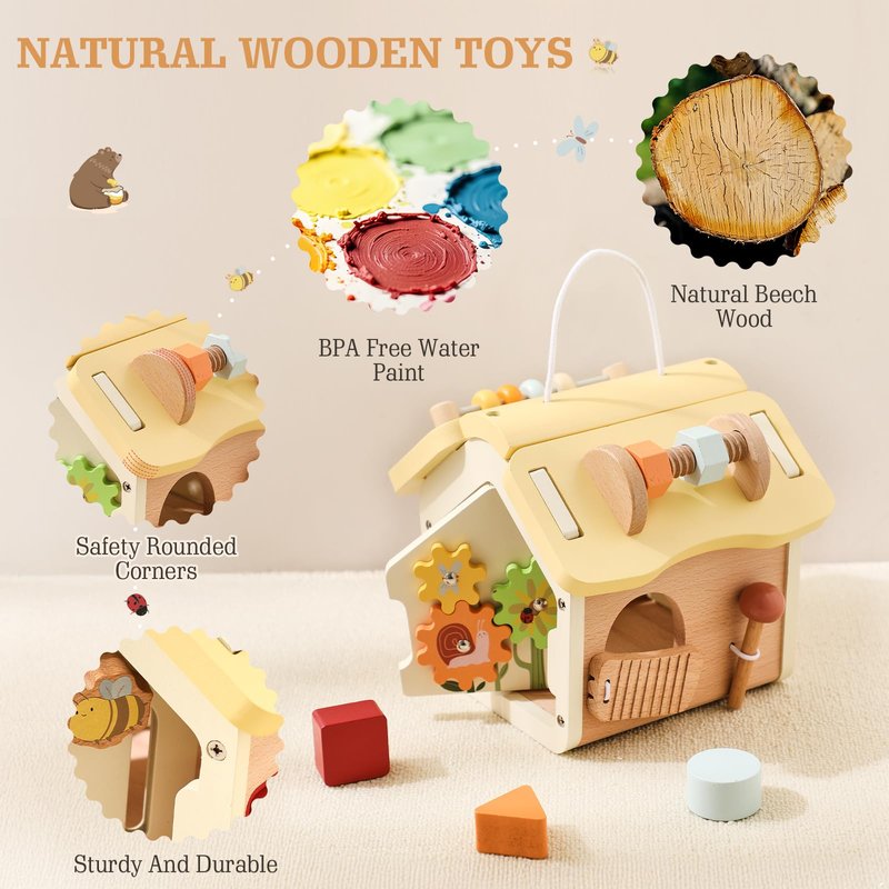 - 🌻𝑴𝒖𝒍𝒕𝒊𝒇𝒖𝒏𝒄𝒕𝒊𝒐𝒏𝒂𝒍 𝑯𝒐𝒖𝒔𝒆 𝑻𝒐𝒚𝒔: Unlike ordinary activity cubes, "let's make" wooden house toy features a unique design with movable roofs and doors, each side hiding more surprises for infants to explore. Movable and reorganizable to encourage sharing and cooperation. Keeps toddlers engaged and interested.