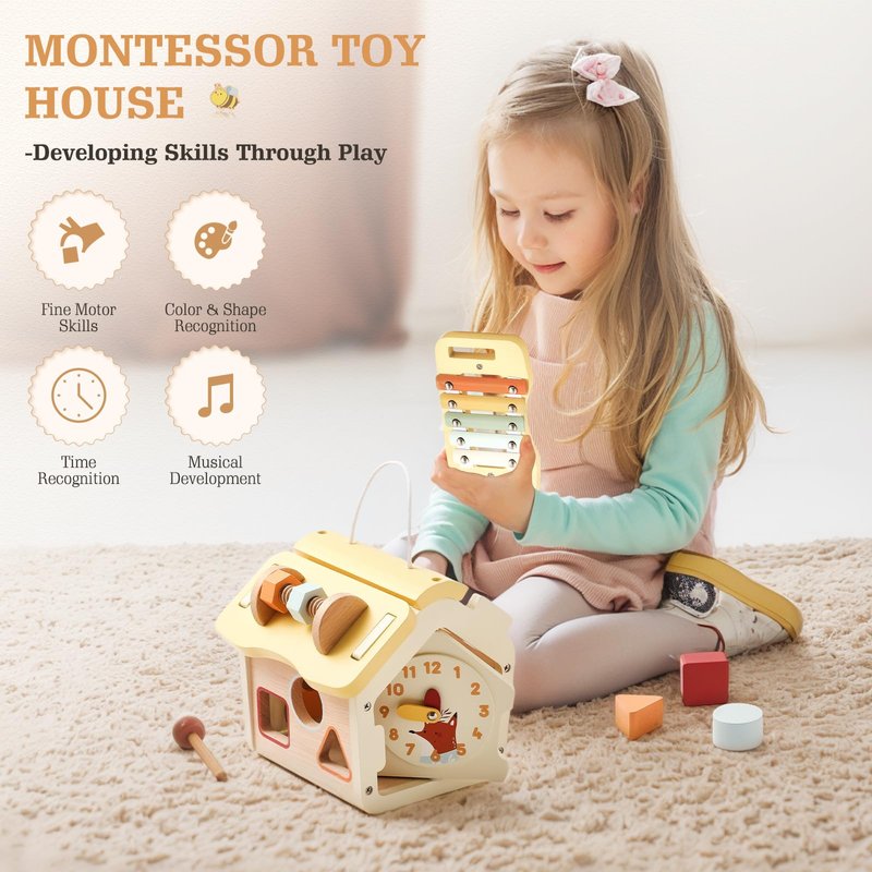 - 🐝𝑴𝒐𝒏𝒕𝒆𝒔𝒔𝒐𝒓𝒊 𝑬𝒅𝒖𝒄𝒂𝒕𝒊𝒐𝒏𝒂𝒍 𝑻𝒐𝒚: 10-in-1 activity cube includes baby xylophone, screw-twisting toys, bead maze, shape matching, rotating gears, clock learning and hidden games waiting to discover! Each feature is meticulously designed to provide enriching play experiences and early learning opportunities.