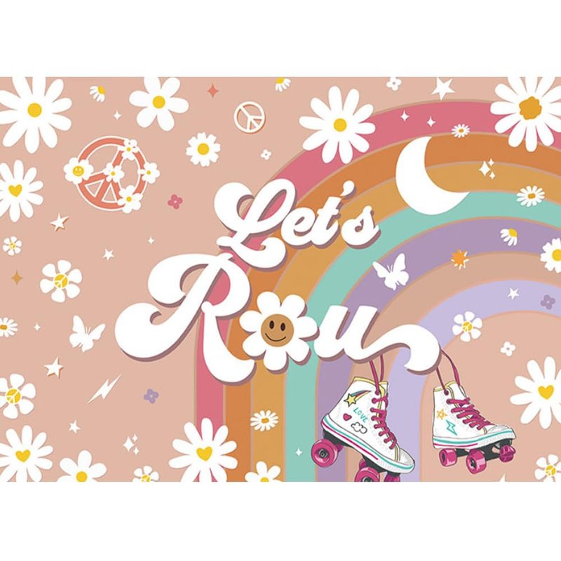 Let's Roll Theme Backdrop Groovy Rainbow Roller Skate Photography Backgroud Lets Roll Skate Party Decors for Roller Skate Girl Birthday Party Decorations Cake Table Banner (7x5ft)