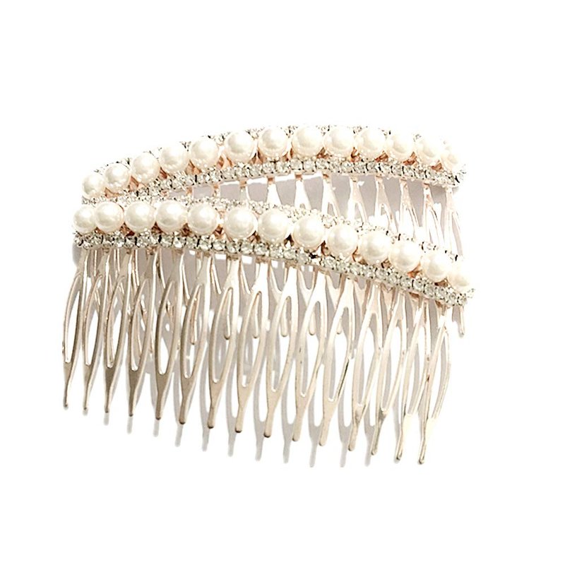 LETSP The most popular fashion Bridal hair accessories rhinestone pearl alloy hair comb wedding hairpin (07)