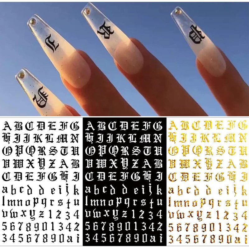 - EASY TO USE: Letters nail stickers for nail art is self-adhesive and requires no glue, just remove sticker then stick this 3D nail decals on your nail. Apply top coat gel to seal to make the stickers last longer