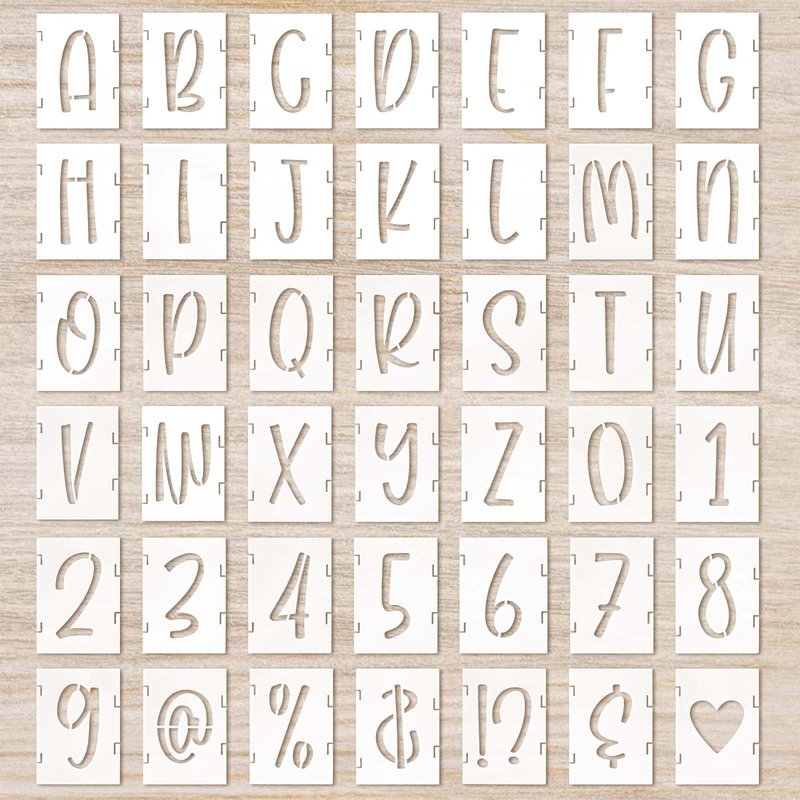 - Package Includes: You will get 42 pieces painting stencils total, including 26 uppercase letters, 10 number stencils, and 6 styles symbol stencils. The characters are a stylish, cursive font that will give you endless possibilities of customized words to create any DIY art project you want.