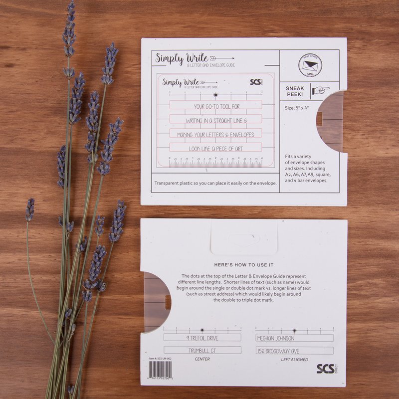 Simply Write is an envelope addressing guide for those of us that have trouble writing in a straight line. It is your go to tool for writing in a straight line and making your letters and envelopes look like a piece of art. Great for sending thank you and holiday cards!
