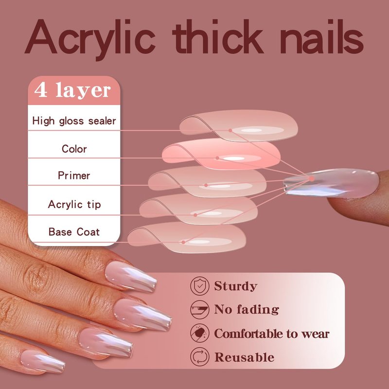- QUALITY MATERIAL--acrylic press on nails full cover french tip nails made of acrylic ABS,healthy, Quality material acrylic press on nails full cover French tip nails made of Acrylic ABS,healthy, environmentally friendly, shiny, and not easy to break.
