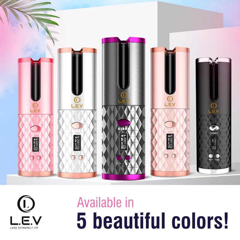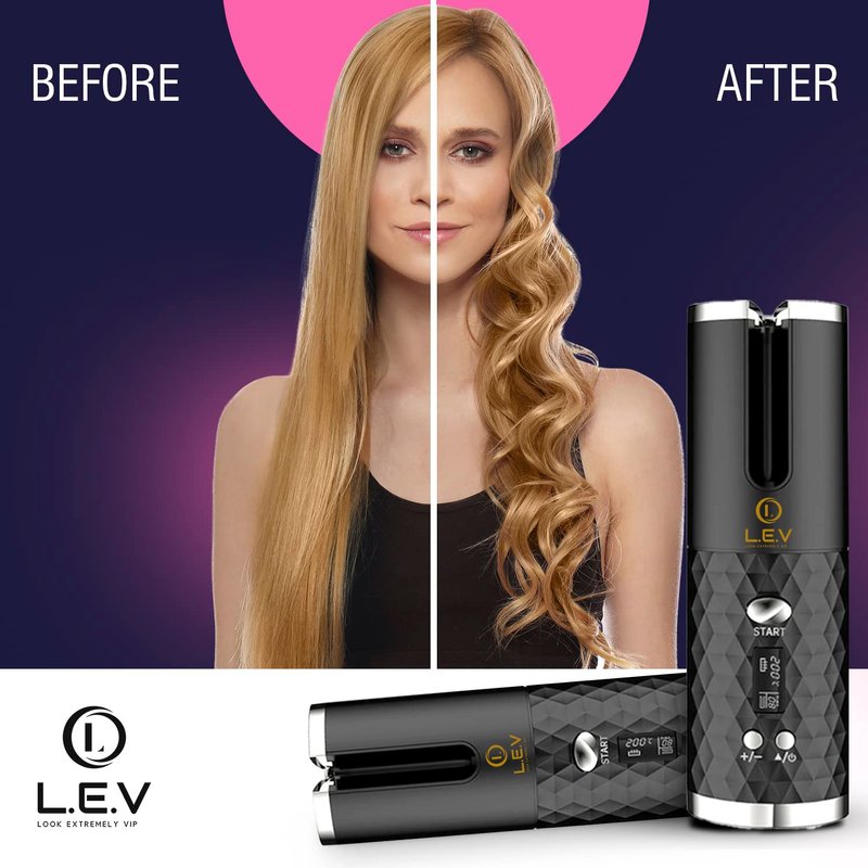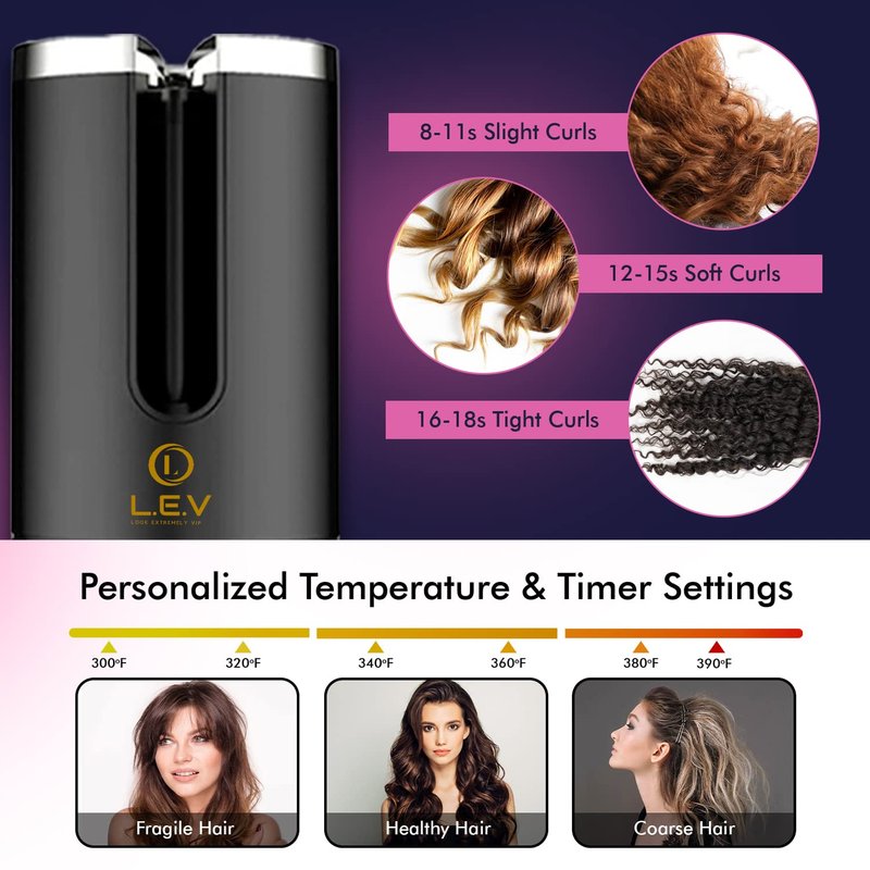 LEV Automatic Curling Iron Hair Curler | Auto Shut-Off Function for Safety | Portable & Curling Wand | Ceramic Rotating Automatic Hair Curler | USB Hair Curling Iron - Black