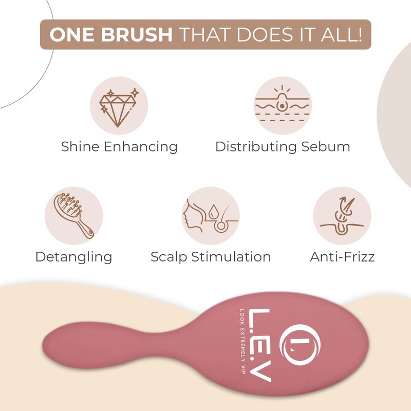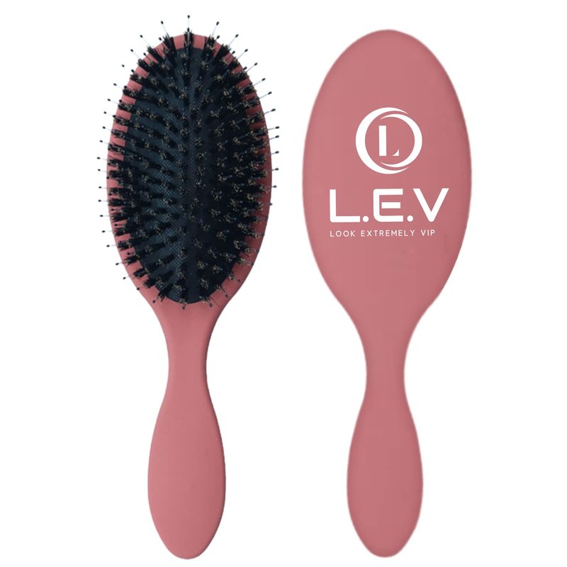 L.E.V Boar Bristle Anti Frizz Hair Styling Brush - Smoothing Brush Hair Comb - Women Hair Brushes for Curly, Thick, and Natural Black Hair - Hair Brushes for Women & Men (Pink)