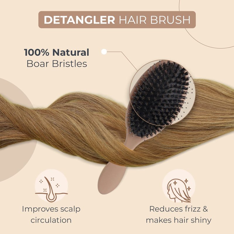 Your scalp's sebum is the best organic anti-frizz serum. Our boar bristle brush will help distribute sebum (natural scalp oil) down the length of the hair strand. Which helps improve the texture and colour of your hair. Your hair will look shinier, smoother, and healthier as a result.