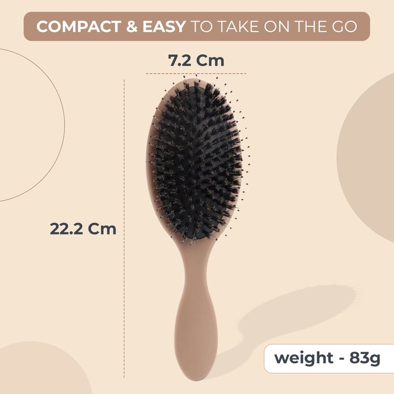 - DENMAN BOAR BRISTLE BRUSH:- The Denman Boar Bristle Brush is a highly regarded hair care tool that combines the expertise of the Denman brand with the benefits of boar bristles. Detangling brush is Known for their exceptional quality & craftsmanship and these palm hair brushes are trusted by professionals and enthusiasts alike. The combination of boar bristles and Denman's signature design results in a curly hair brush that effectively detangles, smoothes, and adds shine to your hair.