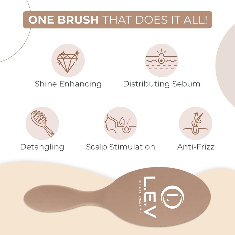 - BOAR BRISTLE BRUSH:- The Boar Bristle Brush is a key feature of the LEV Anti Frizz Hair Styling Brush, offering remarkable benefits for hair care. Crafted with high-quality boar bristles, its hair brush stands out for its ability. The boar brush also aids in reducing frizz by smoothing down the hair cuticles and taming flyaways resulting in a sleek and polished look. Our Hair Styling Brush offers a luxurious and rejuvenating hair care experience.