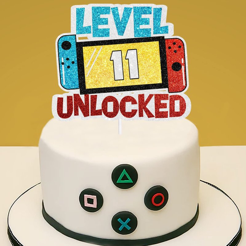 Level 11th Unlocked Cake Topper - Electronic Games Theme Boys Birthday Party Decorations Supplies - 11th Happy Birthday