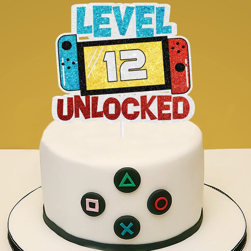 Level 12th Unlocked Cake Topper - Electronic Games Theme Boys Birthday Party Decorations Supplies - 12th Happy Birthday