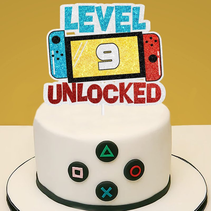 Level 9th Unlocked Cake Topper - Electronic Games Theme Boys Birthday Party Decorations Supplies - 9th Happy Birthday
