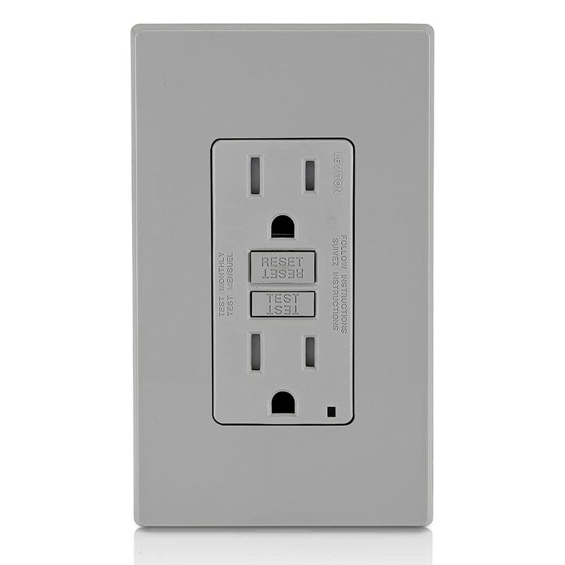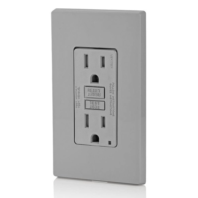 Leviton GFCI Outlet, 15 Amp, Self Test, Tamper-Resistant with LED Indicator Light, Protection from Electric Shock and Electrocution, GFTR1-GY, Gray